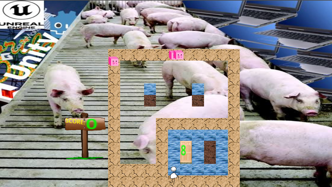 A grid based game where you walk around and put farmland near water.